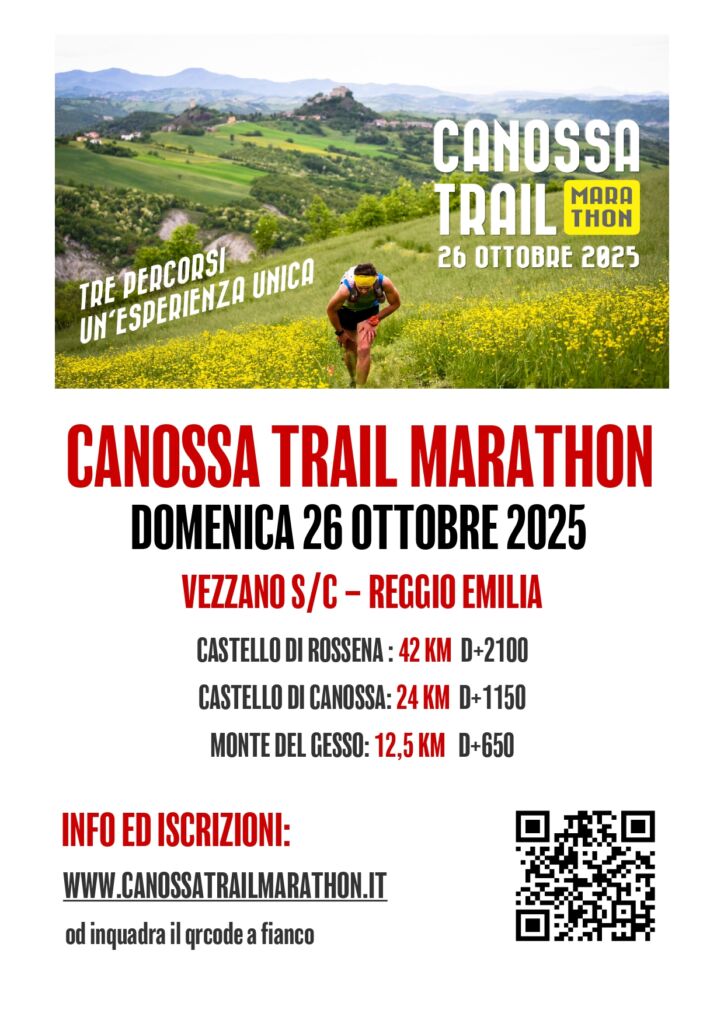 Per info ed iscrizioni www.canossatrailmarathon.it o inquadra i QRcode sul volantino.