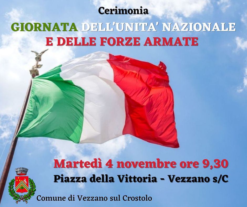 Martedì 4 novembre 2025 alle ore 9.30 in Piazza della Vittoria avrà luogo la cerimonia per la Giornata dell’Unità Nazionale e delle Forze Armate alla presenza delle autorità cittadine e militari e dei rappresentanti delle Associazioni.