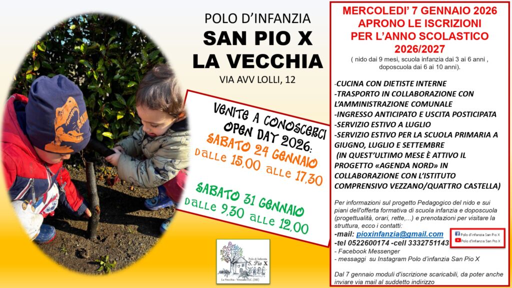 CONTATTI: Tel. 0522.600174; Cell. 333.2751143; E-mail pioxinfanzia@gmail.com; Messanger di Facebook; messaggi su Instagram.