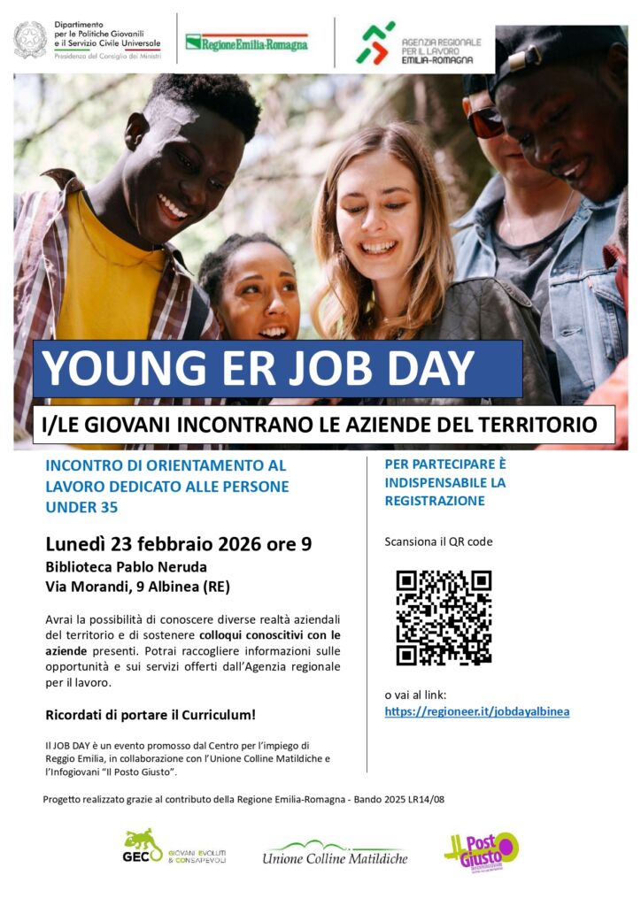 Per la prima volta, vedremo un appuntamento dedicato all’orientamento al lavoro dei giovani, sul territorio dell’Unione Colline Matildiche, che comprende i Comuni di Albinea, Quattro Castella e Vezzano sul Crostolo.